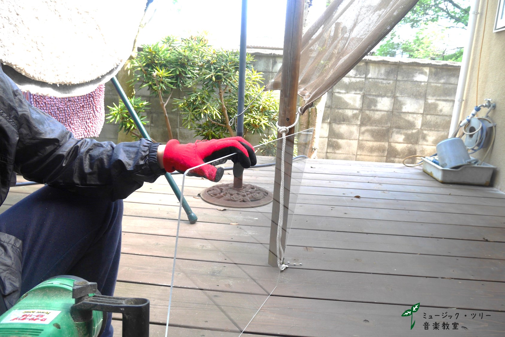 ※ピアノ・ヴァイオリン・ビオラ・チェロ・・どのレッスンにも楽に移動して使用可能な「可動式カーテン」を作っていきます。